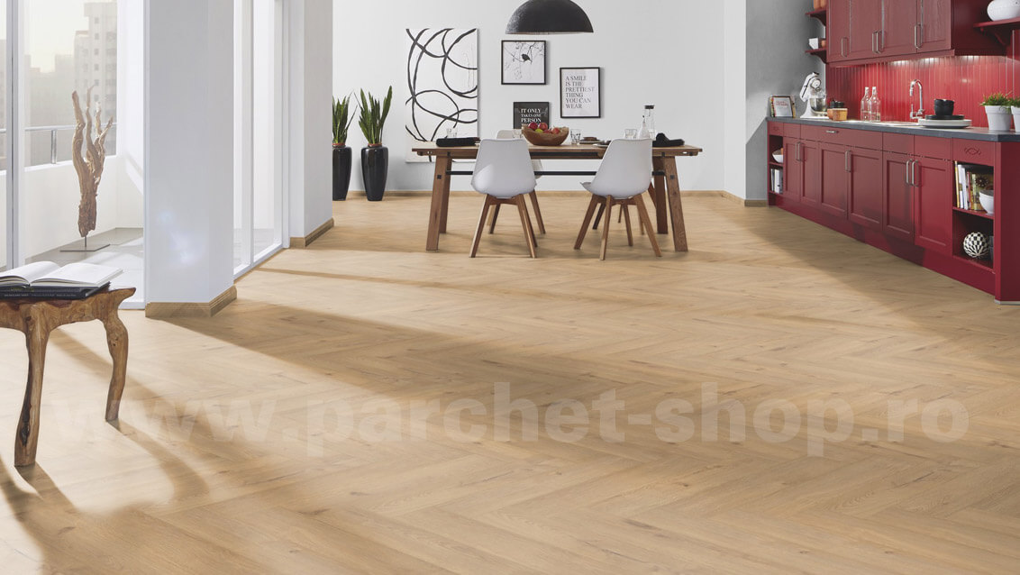 Krono Original Herringbone Decor - Chantilly Oak Grosime - 8 mm Clasa 32 - trafic comercial Cod - 5953 Preț cu montaj: 149.9 lei Preț fără montaj: 89.9 lei Detalii tehnice